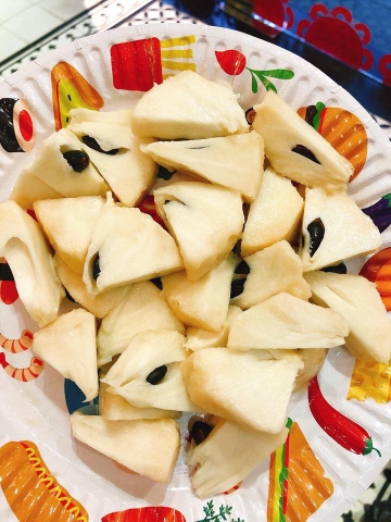 Khi na chín bạn hãy dùng dao gọt vỏ, vỏ na Úc tương đối mỏng nên bạn đừng gọt sâu nhé, sau đó bổ đôi mà cắt thành từng miếng vừa ăn.