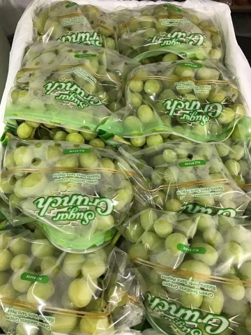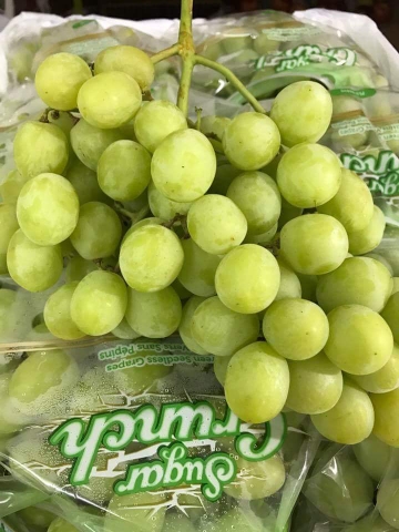 Nhưng năm nay có một dòng nho hót mang tên Sugar Grunch. Nho xanh đẳng cấp của Mỹ. Nho xanh giòn tan rôp rốp, ngọt, thơm, được đánh giá là ngon hơn dòng nho cô gái. Thậm chí còn ngọt hơn cả nho Hàn mà giá cả lại phải chăng. Loại nho xanh này không về nhiều, thi thoảng có một đợt nên hàng hơi hiếm.
